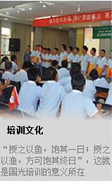 董事長原來是師范校的教師,他把教書育人也帶到了國光企業,從創業初期就重視對員工進行培訓,而且還編寫技術資料對經銷商和用戶進行培訓。早年的手寫保鮮劑資料就是一個例證,創業至今從沒有停止過對員工和用戶的培訓,每年新生入公司要進行至少一個月的培訓,員工每兩個月要培訓一次,年底全體員工還要學習培訓近一個月。不僅對員工是這樣,國光每年 還把經銷商、種植戶請到公司來培訓學習。國光每年10月份起各種培訓會議就不斷。這種學習 文化、學習型企業不僅培養了大量的優秀員工和經銷商,還給種植戶和同行留下了深刻的印象, 稱國光是業內的黃浦軍校。