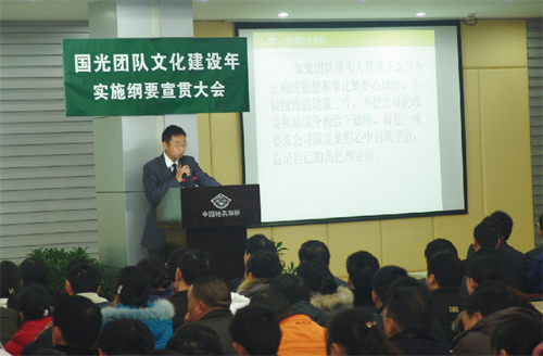 隨著企業的進一步壯大,營銷模式逐步轉型,技術服務的加強,國光品牌有了進一步的提升。同時注意到國內一些企業在短期行為的驅使下,不重視產品質量、不講誠信,導致企業壽命短。而世界上重視產品質量和品牌的知名企業大都有百年以上的歷史。國光基于這些感悟,在總結國光發展的成敗得失和類比剖析同行業基礎上,形成了『做百年、做品牌』的國光企業理念,并用這一理念去指導、規范『做質量、做誠信、做特色、做服務、做祥和、盡社會責任、重企業文化、重人才培養』的子理念行為,從而達到用品牌取勝,百年不衰。