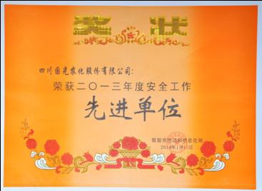 2014年1月15日,簡陽市經濟和信息化局召開《市經信系統2013年度安全工作總結暨2014年度安全工作會議》。會上,對安全生產工作方面做出的成績的先進單位進行了表彰。我公司榮獲2013年度安全工作先進單位。