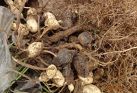 癥狀:花生根結線蟲病主要為害植株的地下部,因地下部受害引起地上部生長發育不良。幼苗被害,一般出土半個月后即可表現癥狀,植株萎縮不長,下部葉變黃,始花期后,整株莖葉逐漸變黃,葉片小,底葉葉緣焦灼,提早脫落,開花遲,病株矮小,似缺肥水狀,田間常成片成窩發生。雨水多時,病情可減輕。
