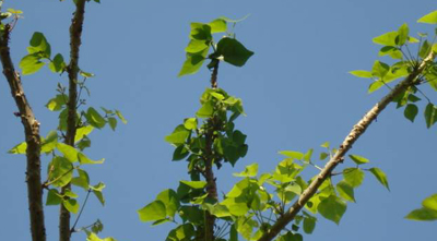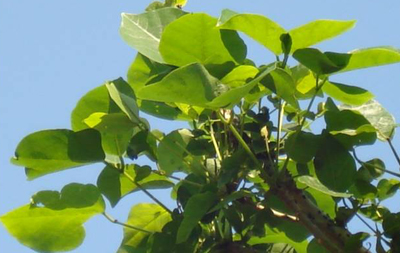 刺桐姬小蜂專一危害刺桐屬植物,該蟲生殖能力很強,通常一旦出現輕微感染,短時間內便會擴散到全株。刺桐姬小蜂將卵產于刺桐嫩葉和葉柄組織內, 幼蟲在植物組織內生長發育。由于植物組織受到幼蟲唾液分泌物刺激而增生, 呈水泡狀膨大, 并在葉片背面和葉柄上形成瘤狀蟲癭。蟲癭很快蔓延到全株, 致使全株葉片組織膨大,發展形成畸形、卷曲的病葉,嚴重影響整體景觀效映。幼蟲在蟲癭內化蛹, 羽化的成蟲從蟲癭的羽化孔飛出。姬小蜂除了造成蟲癭, 使枝葉膨大、扭曲變形, 降低刺桐的觀賞價值外, 還會使形成蟲癭的枝、葉和旁邊的嫩枝、嫩芽枯死,葉片脫落。新發的葉片、嫩枝不斷受到感染, 無法長出健康的枝葉進行光合作用,到后期直接造成刺桐樹死亡。